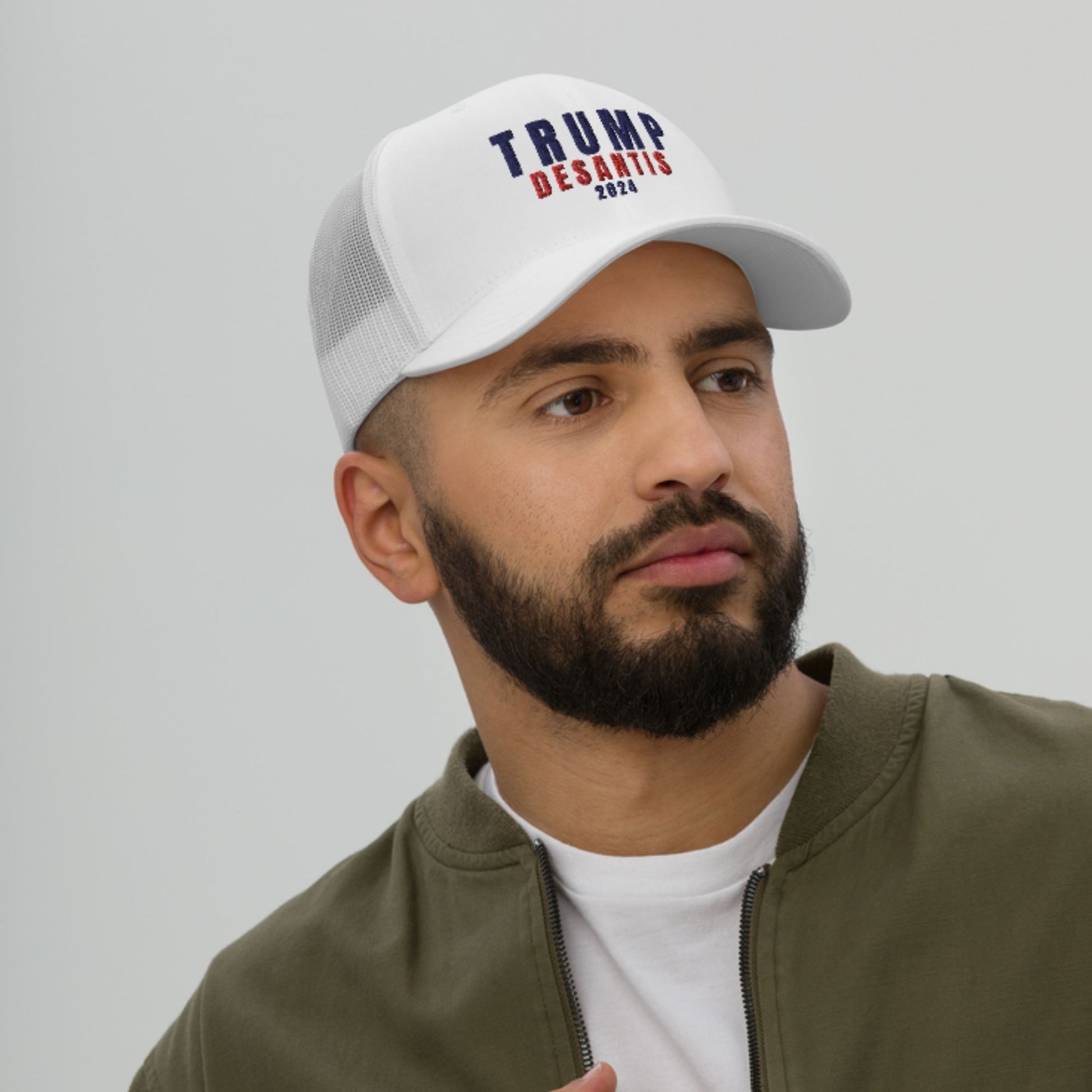 - Donald Trump Ron DeSantis for President 2024 MAGA Adjustable Trucker Hat! Perfect for any President Trump and Ron DeSantis fan, this very high-quality hat is printed and shipped from the USA, unlike cheap hats you see for sale that are imported from China. Makes a perfect gift or addition to your own collection! Original design in Red and Navy embroidered on the front.